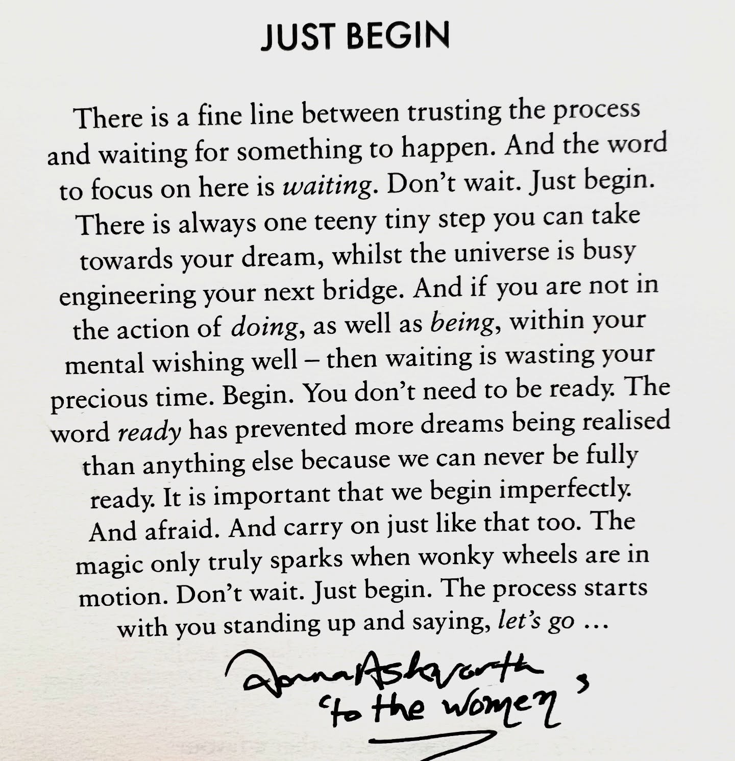 Donna Ashworth s’ poem Just Begin sums this up beautifully x